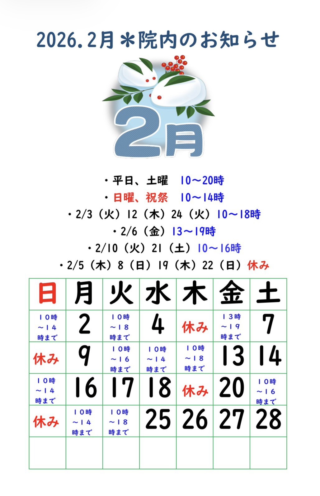 【2026.2月院内のお知らせ】